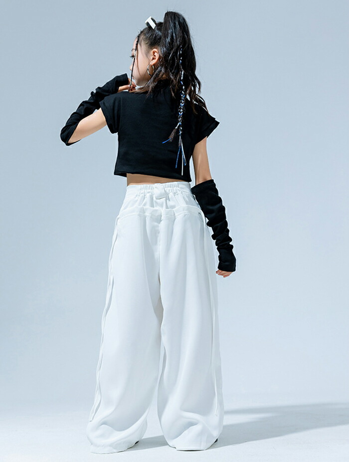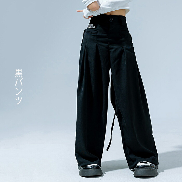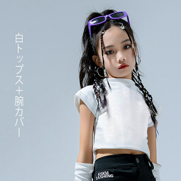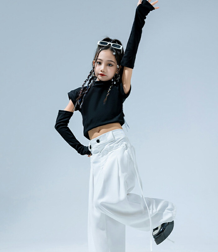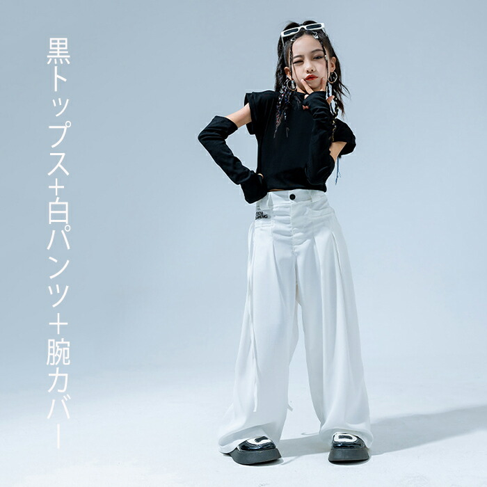 ダンス衣装 キッズ パンツ 女の子 セットアップ 上下セット ゆったり ホワイト 白 黒 トップス 腕カバー ジャズダンス ヒップホップ 派手 韓国 kpop 応援団 演出服 団体 かっこいい