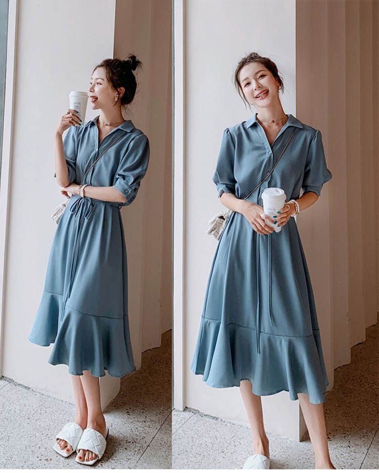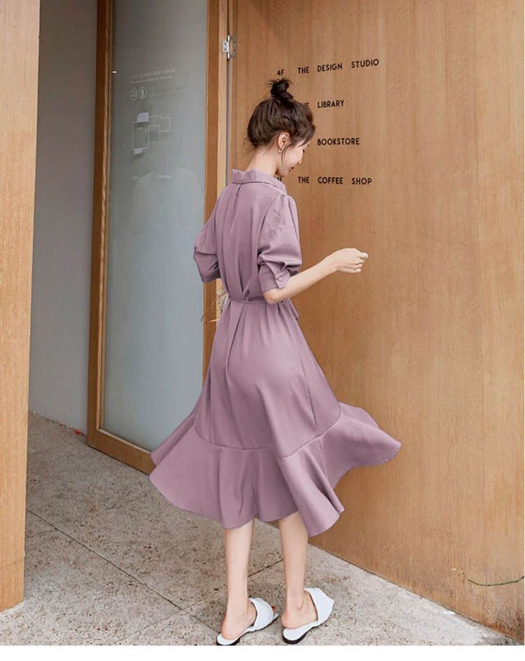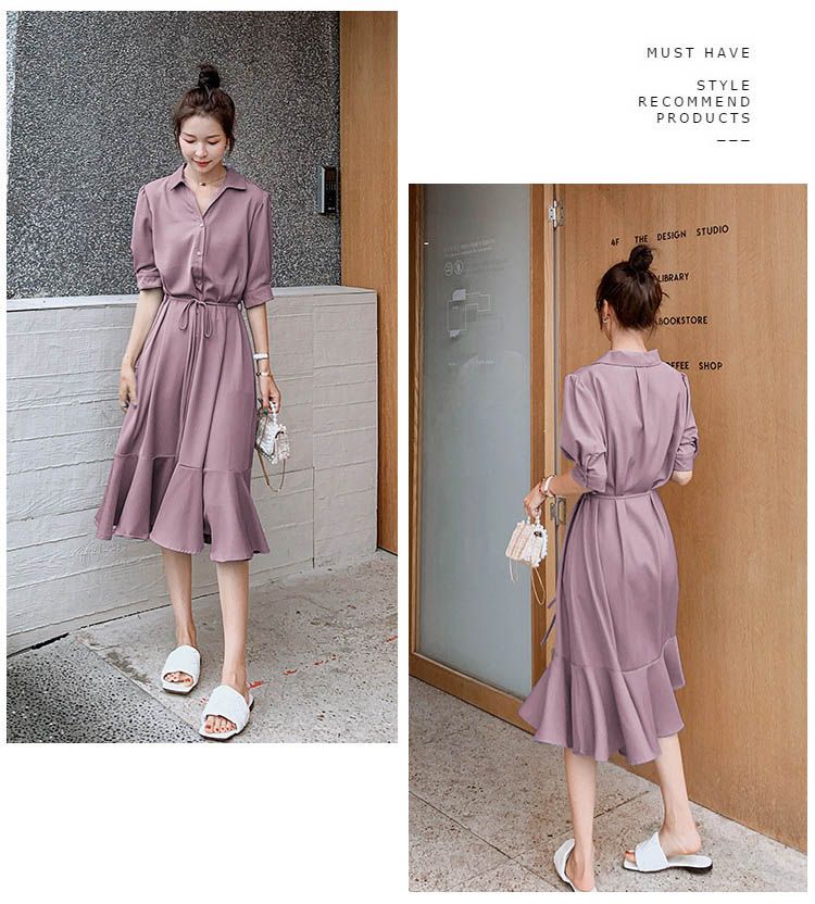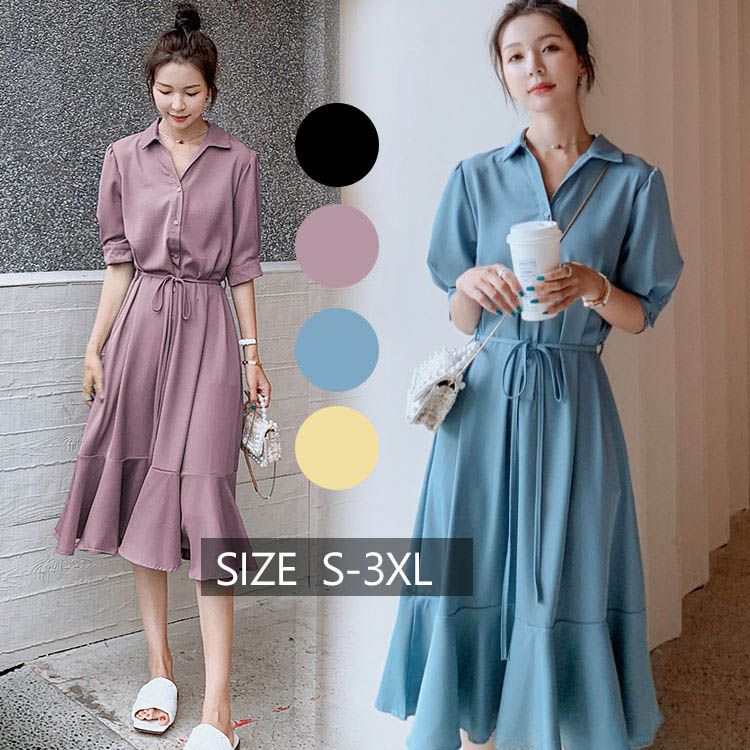 シャツワンピース レデイース 半袖 4 ブルー イエロー ブラック パープル S M L XL 2XL 3XL
