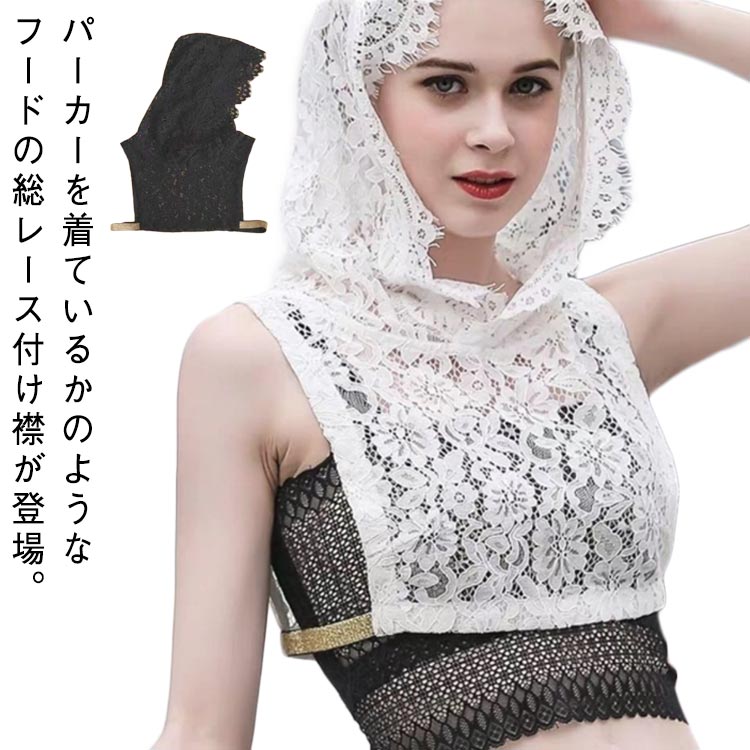 総レース 付け襟 つけ襟 パーカー襟 付け襟 続々登場 ブラック ホワイト