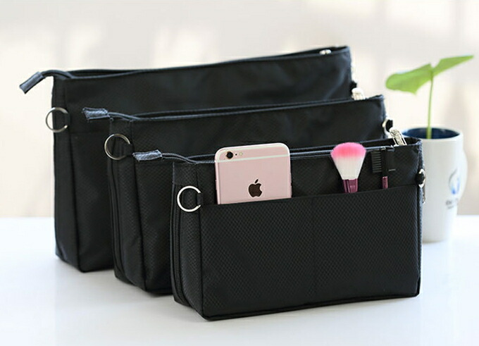バッグインバッグ ユニセックス 男女兼用 大きめ M L XL 3サイズ ナイロン 丈夫 ポーチ 軽量バックしっかり 自立 軽量 軽い マチ調整可 マチ広め ファスナー フック d 6ポケット