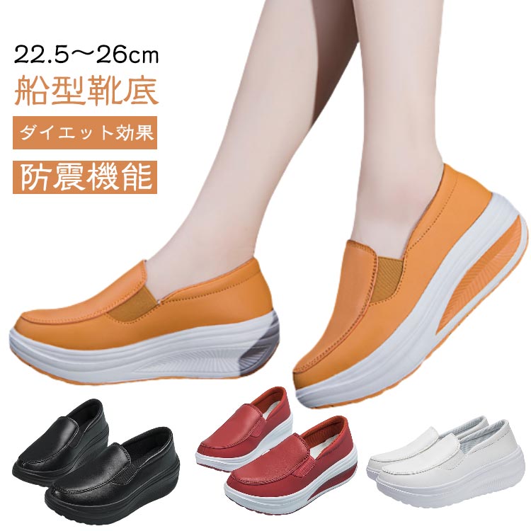厚底スニーカー ナースシューズ ダイエットシューズ 痛くない 革 黒 シェイプアップシューズ ウォーキングシューズ エクササイズシューズ 厚底靴 シークレットシューズ 靴 レディース レザー 痩せる