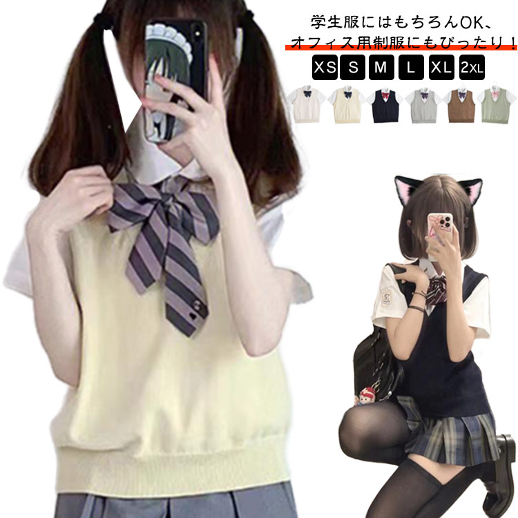 スクールベスト 制服 ベスト 夏用 薄 トップス ベスト 豊富な品揃え イエロー ホワイト グレー グリーン ブラウン ネイビー XS S M L XL 2XL