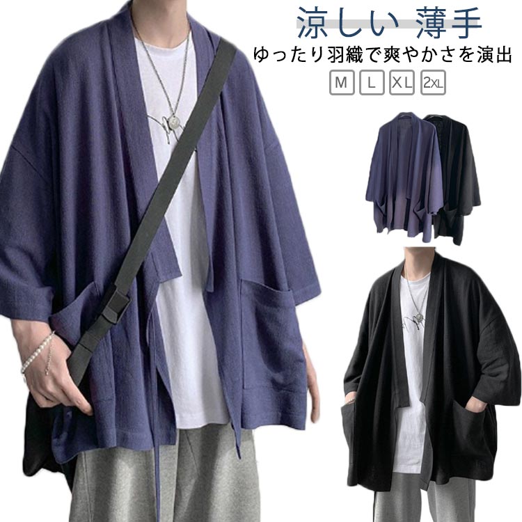 カーディガン メンズ 甚平 春夏 ビッ トップス カーディガン 新作 ブラック ネイビー M L XL 2XL