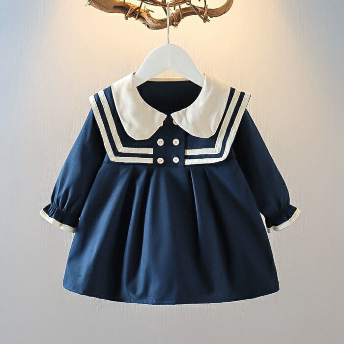 新品 ワンピース 女の子 幼児 長袖 キッズ ベビー マタニティ 早い者勝ち ホワイト ネイビー 73cm 80cm 90cm 100cm 110cm