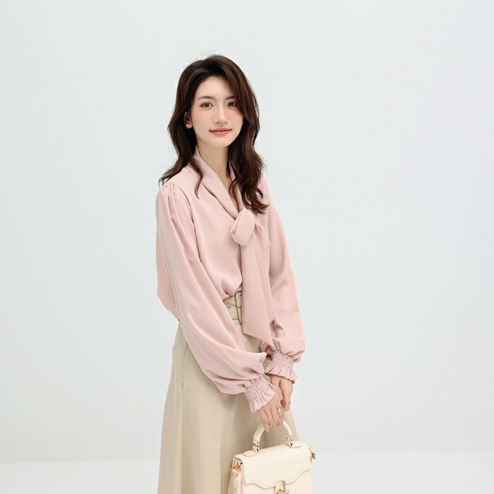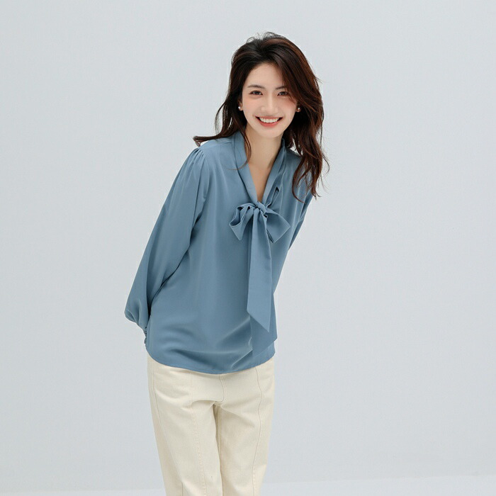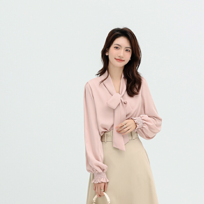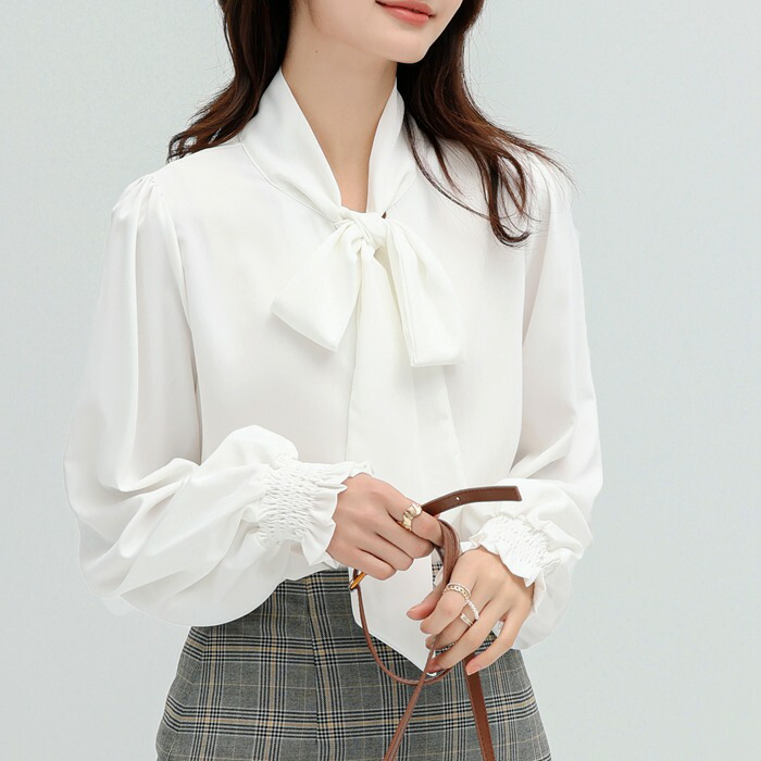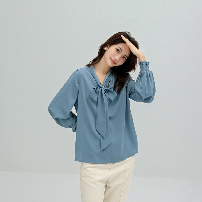 シアースリーブ ドッキングシャツ ボウタイシャツブラウス