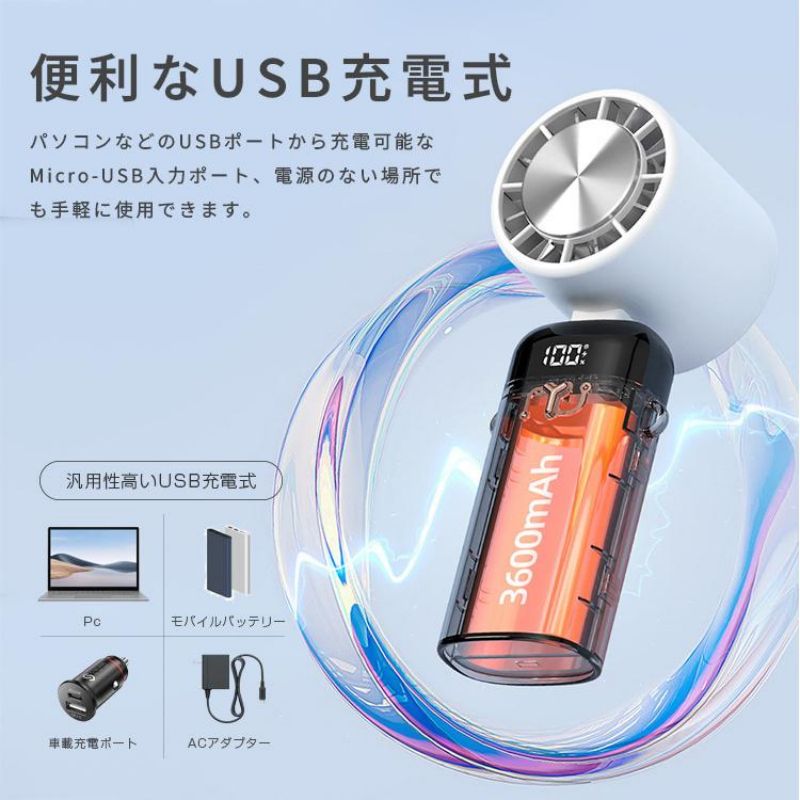 首掛け扇風機・手持ち扇風機・卓上扇風機・首掛けクーラー・スマホスタンドなどのひとりひとりの良いとこ取りをした手持ちクーラー扇風機。 付属品にストラップも付き、瞬間首掛け扇風機になれますので、優れる多様性です。