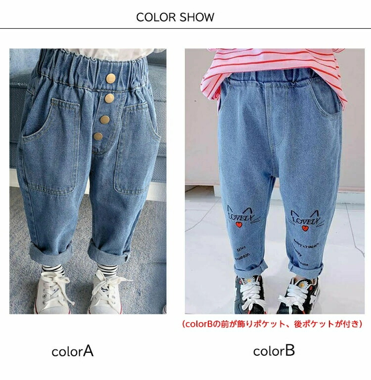 デニムパンツ 子供 パンツ ポケット付 キッズ ボトムス パンツ 早い者勝ち colorA colorB 90 100 110 120 130 140