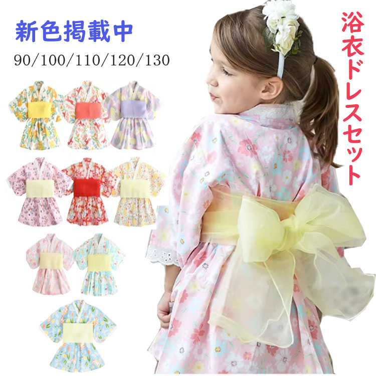 子供 女の子 ワンピース ゆかた ドレス 浴衣ドレス 2点セット セパレート 兵児帯 帯セット レース 和柄 和風 女児 90 100 110 120 お祝い プレゼント 孫の日 130