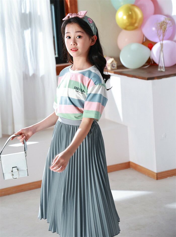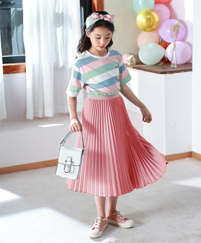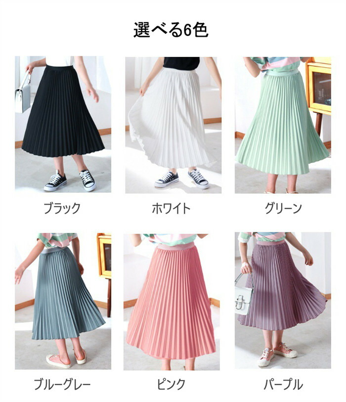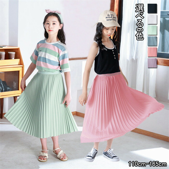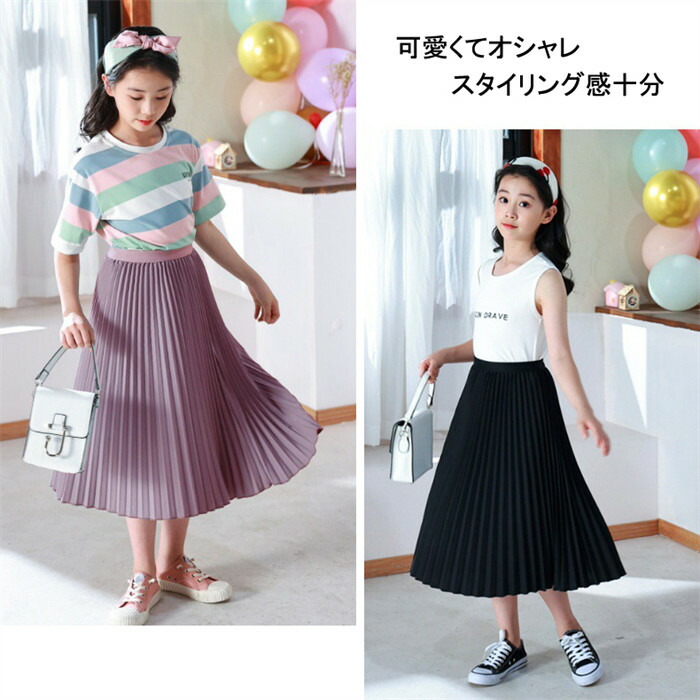 キッズ ロングスカート 女の子 プリー キッズ ボトムス スカート 豊富な品揃え ブラック ホワイト グリーン ブルーグレー ピンク パープル 110 120 130 140 150 160 165