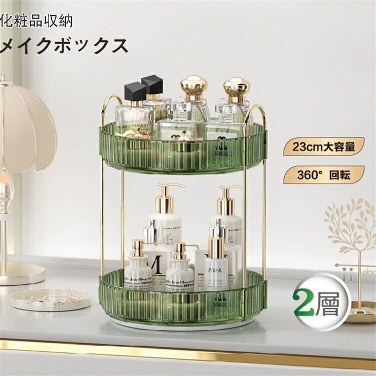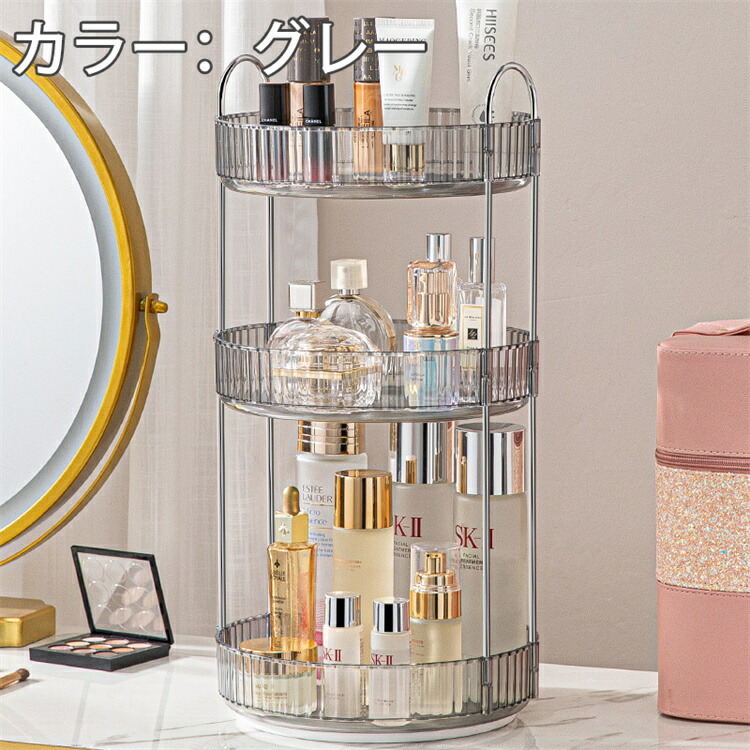 収納ケース 360°回転 コスメ収納 透明 グリーン グレー 1層 2層 3層