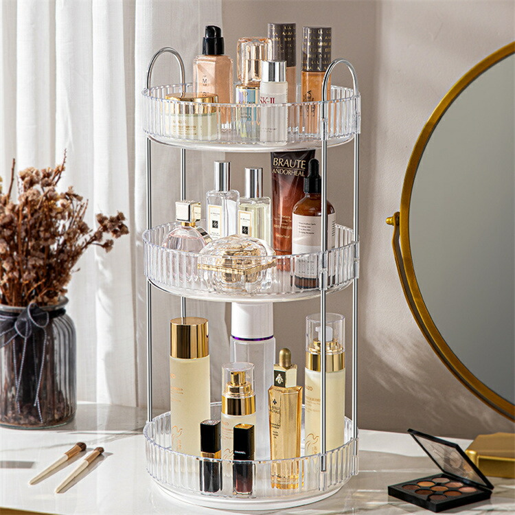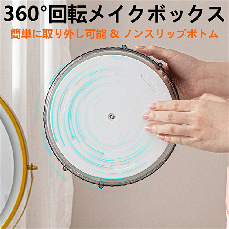 【360度回転メイクボックス】 360度回転し、化粧品を取りやすく、より便利で効率的なライフスタイル体験をお届けします。回転台座は滑らかで、トレイエッジが高く、回転時の化粧品の落下を防止し、浴室収納やスキンケア用品収納の理想的な選択です。