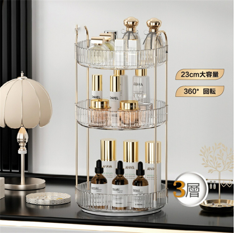 【3段大容量】 23cm - 化粧収納ボックスは3層の大容量設計で、化粧水、フェスクリーム、マニキュアなどのスキンケアや化粧品を30~40本収納できます。日常的なニーズを満たし、スペースを80%節約できるので、散らかりがちな化粧台ともおさらばできます!