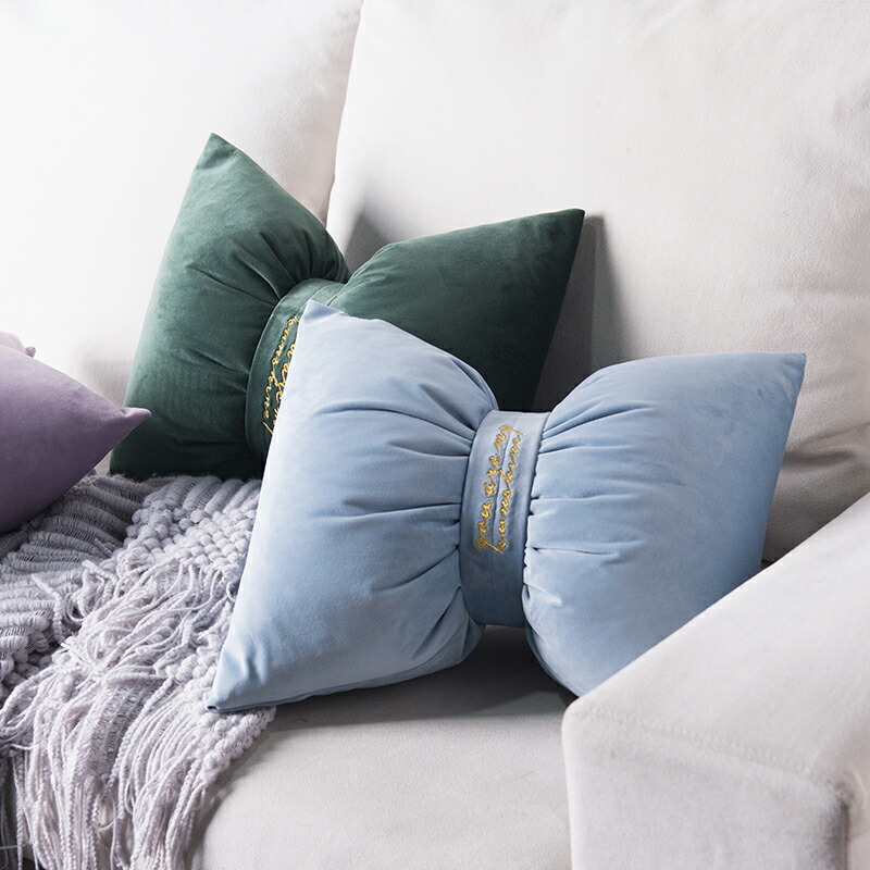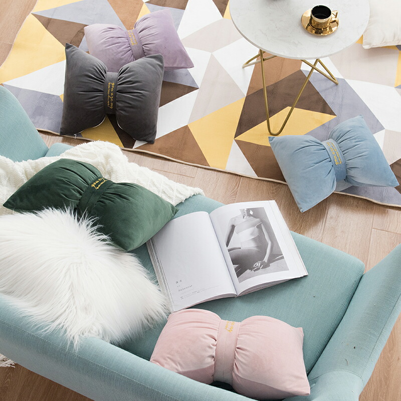 リボンクッション韓国雑貨インテリアおし ピンク ホワイト グレー グリーン ブルー パープル
