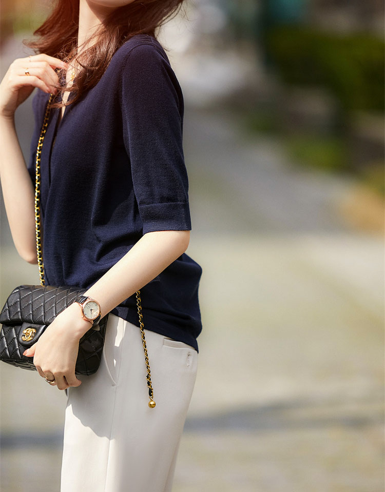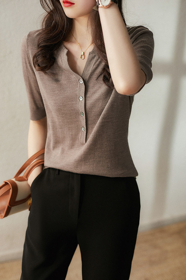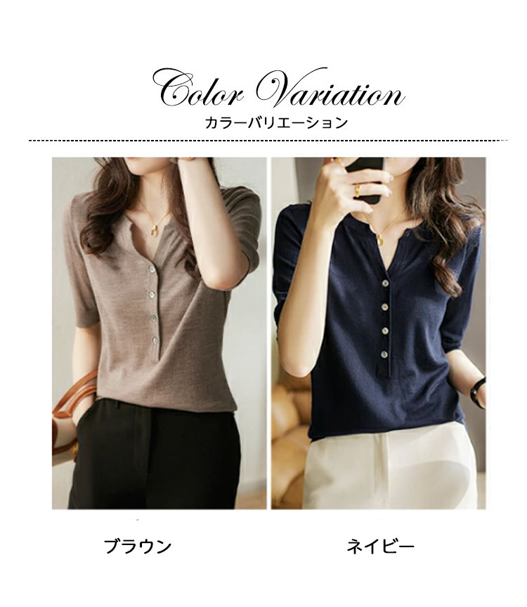 ニット レディース 半袖 シンプル v レディースファッション 続々登場 ネイビー ブラウン