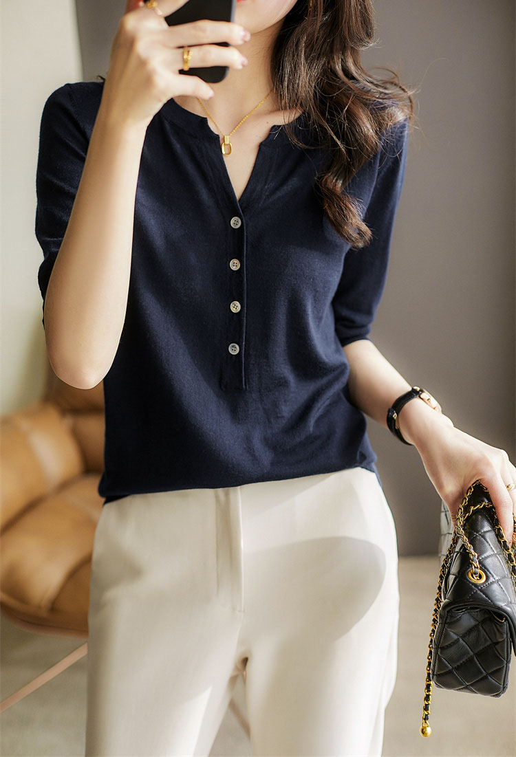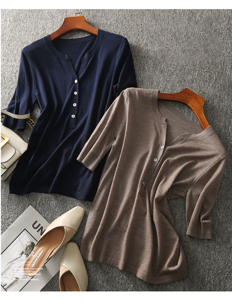 ニット レディース 半袖 シンプル vネック きれいめ トップス ゆったり プルオーバー 五分袖 やわらかい 着回し 無地 オフィスカジュアル ナチュラル大人ニット 柔らか 着心地よい サマーニ 薄手