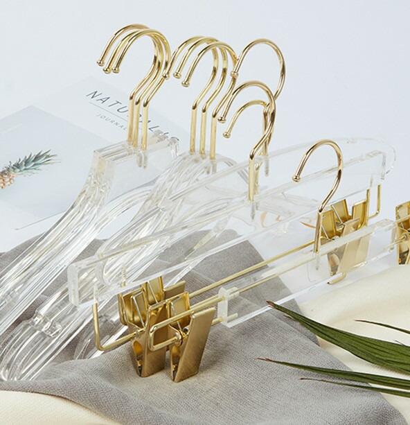 3本セットハンガーゴールドクリア透明白ホワイトおしゃれ韓国雑貨インテリアコートクリップTシャツズボンパンツスカート曲がらない軽いクローゼット収納洋服型崩れ防止レトロボトムスリッチお店販売