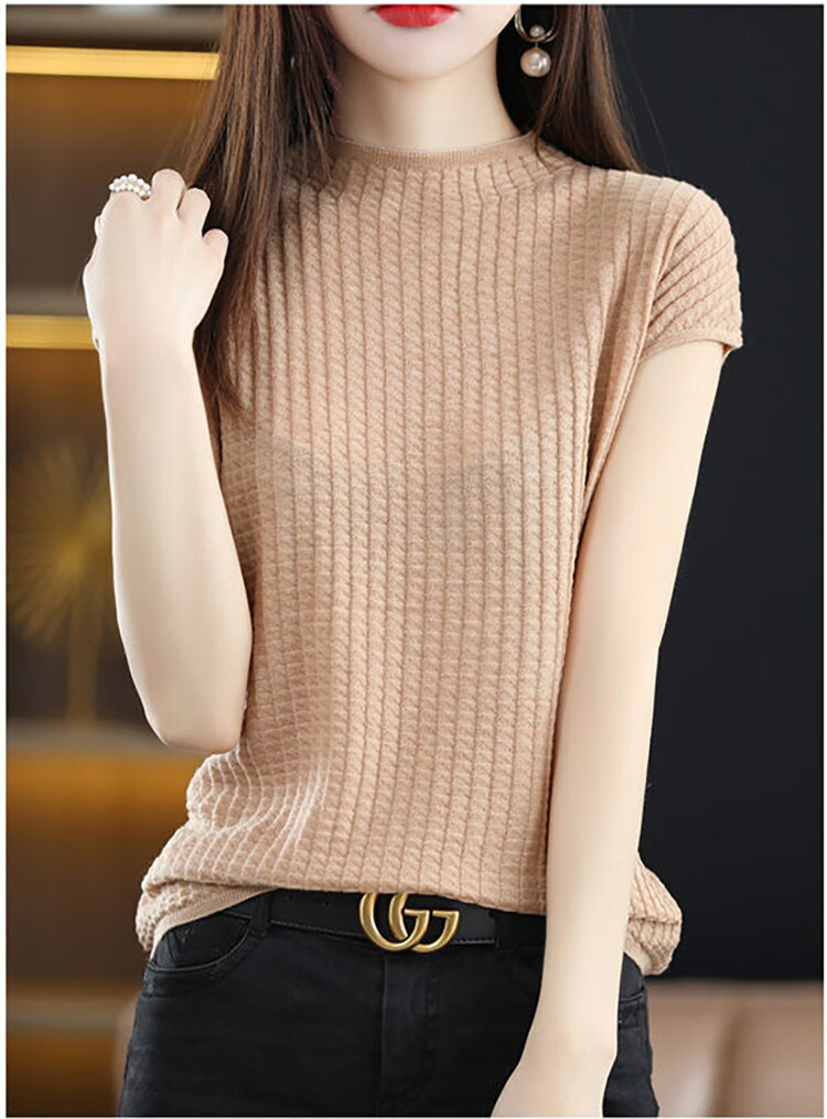 この春夏シーズンにぴったりのインナートップスは、シンプルでありながらも洗練されたデザインが魅力です。上品なリブ編みのディテールが特徴的で、どんなアウターにもスムーズに合わせやすい一枚です。