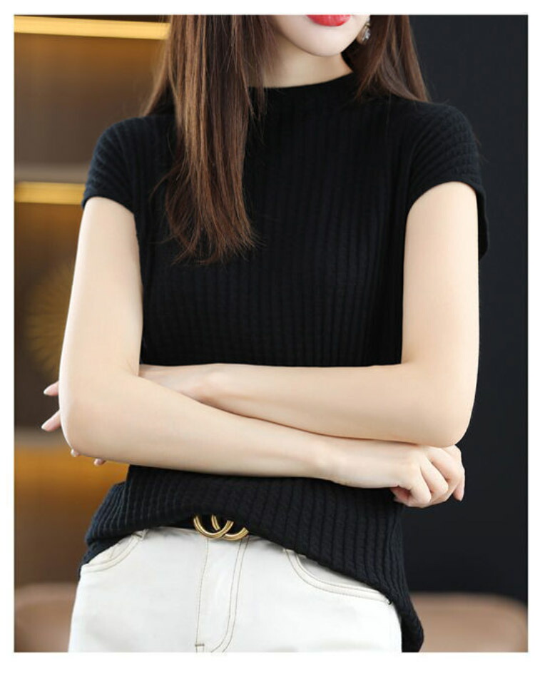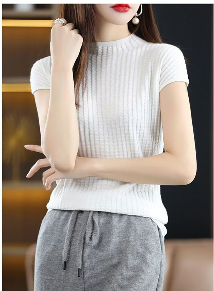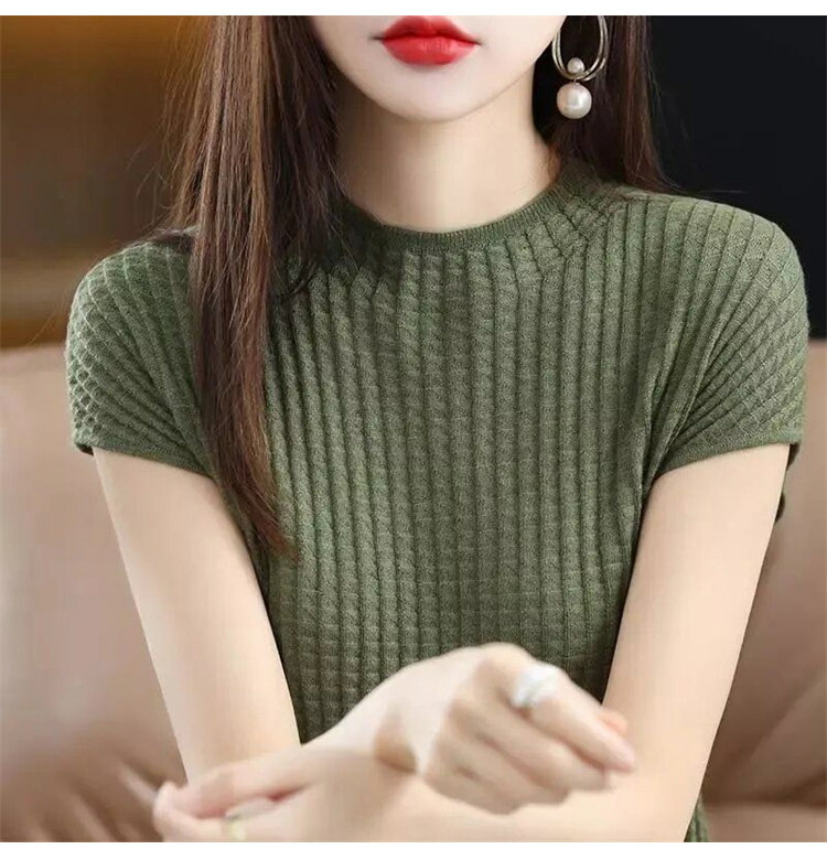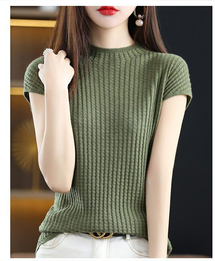 トップス レディース ニット サマーニット 半袖 クルーネック フレンチスリーブ リブニット セーター クルーネックニット プルオーバー 薄手 細見え オフィスカジュアル セクシー 大人 ストレッチ