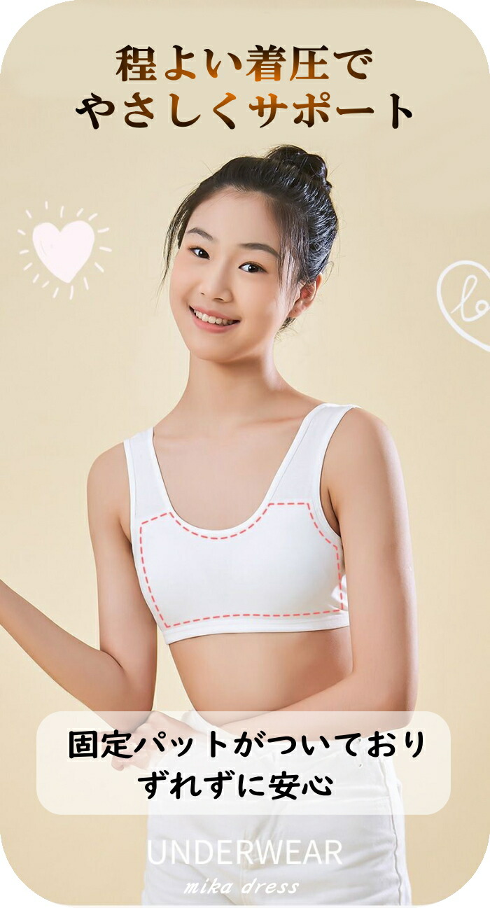 子供 スポーツ ブラ カップ一体型 スポーツブラ ジュニア用 小学生 中学生 ブラジャー 下着 女子 女の子 インナー シンプル 130 140 150 ファーストブラ ジュニアブラ かわいい 160