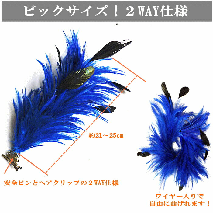 大人気 2WAY 羽根 フェザー ビック コサージュ ヘッドドレス 髪飾り パーティードレス ダンス 衣装 ベリーダンス フラメンコ ヒップホップ ヘアアクセサリー 安全ピンとヘアクリップ 社交ダンス