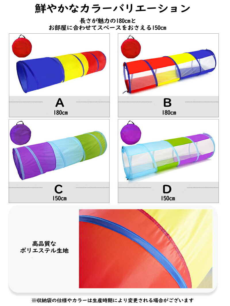 ハイハイ トンネル キッズテント 折り おもちゃ ままごと ごっこ遊びトイ お店屋さん 人気 A-180cm B-180cm C-150cm D-150cm