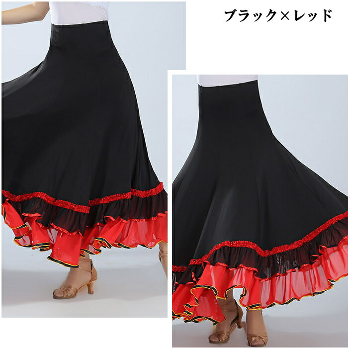 社交ダンス衣装 ダンス スカート ベリ ボトムス スカート 特集 ブラック×ブラック ブラック×レッド ブラック×ブルー ブラック×パープル ブラック×ライトブルー ブラック×ピンク