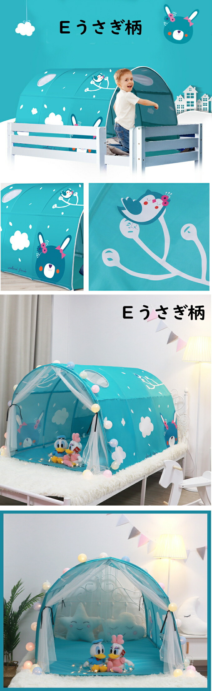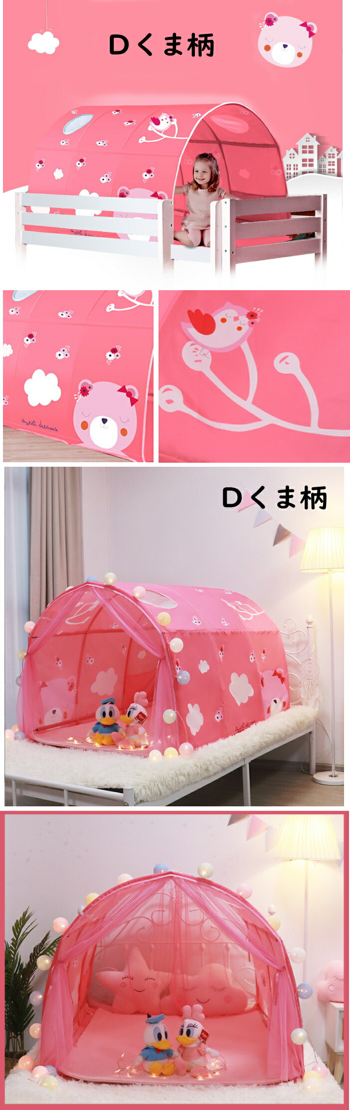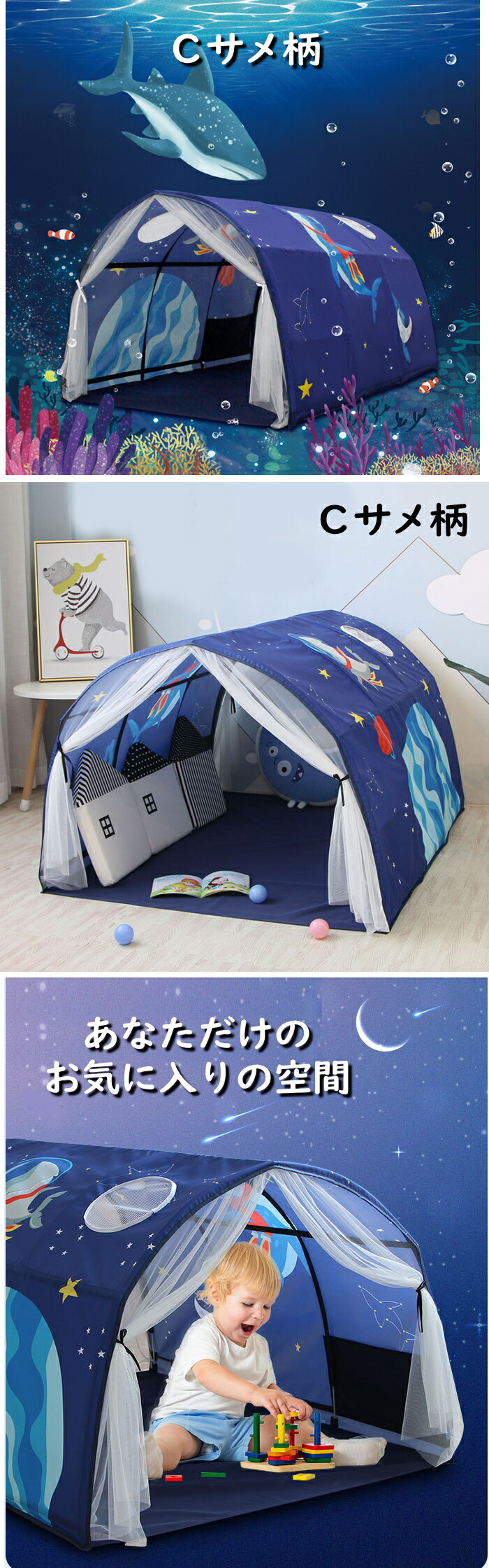ベッドテント キッズテント クリスマス ネイビー ピンク Aグレー×ピンク Bグレー×ブルー Cサメ柄 Dくま柄 Eうさぎ柄