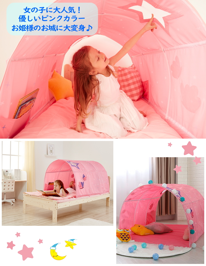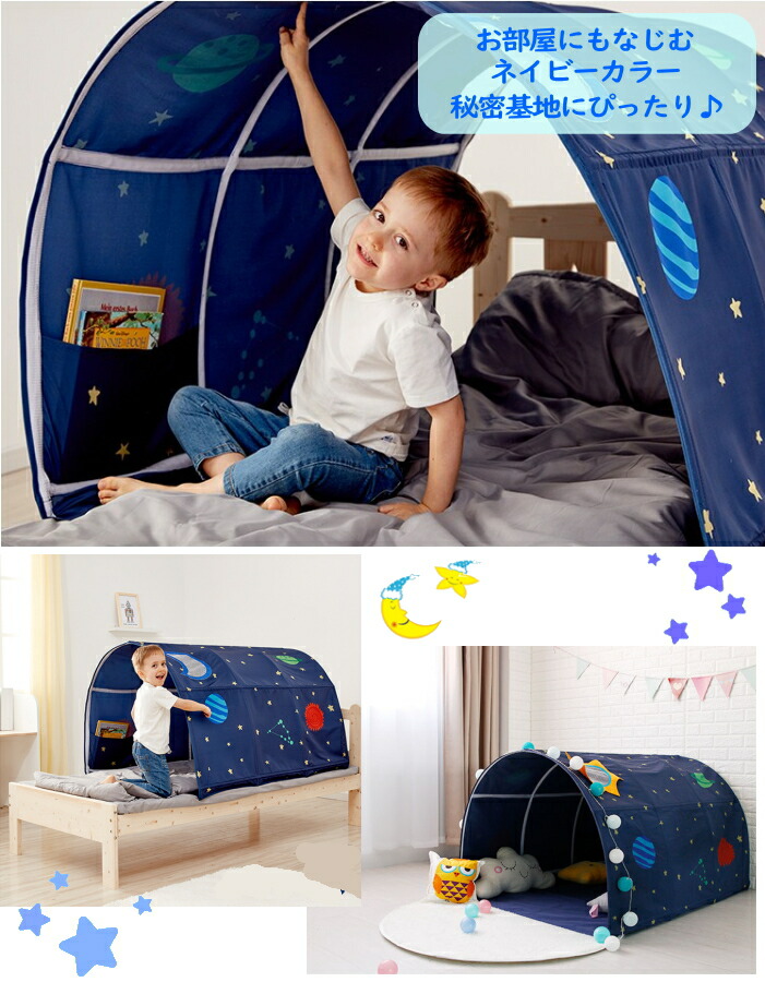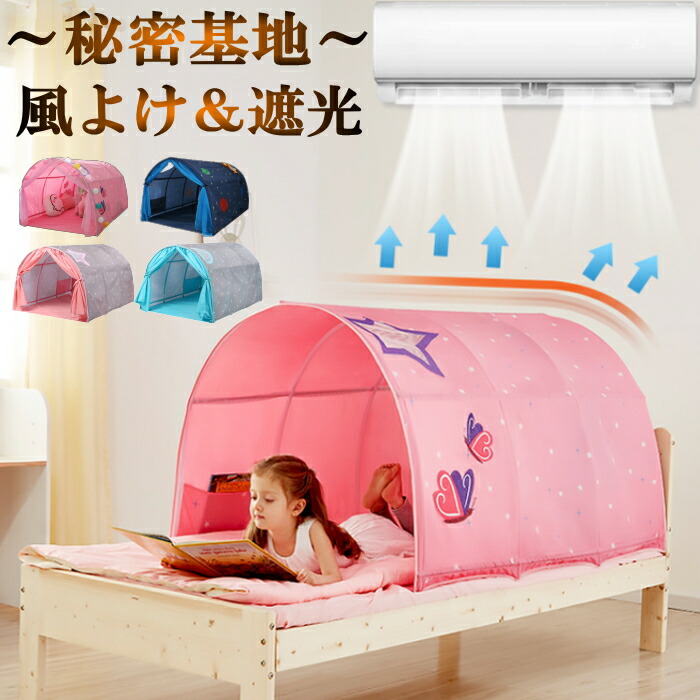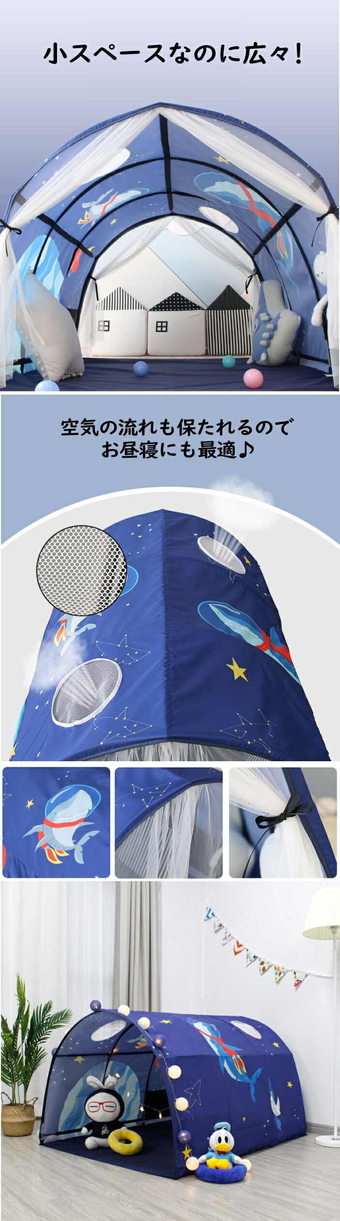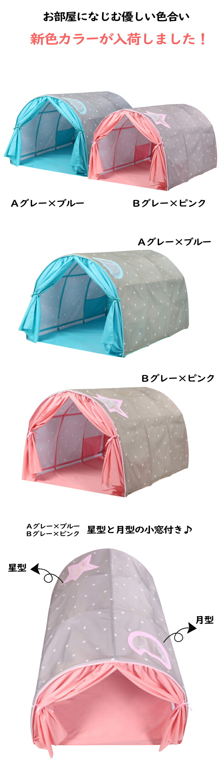 ベッドテント キッズテント クリスマス ネイビー ピンク Aグレー×ピンク Bグレー×ブルー Cサメ柄 Dくま柄 Eうさぎ柄