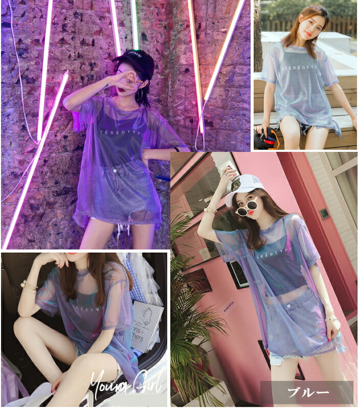 シアー Tシャツ ダンス衣装 トップス 体操 ダンス その他 豊富な品揃え グリーン イエロー ピンク ブルー パープル