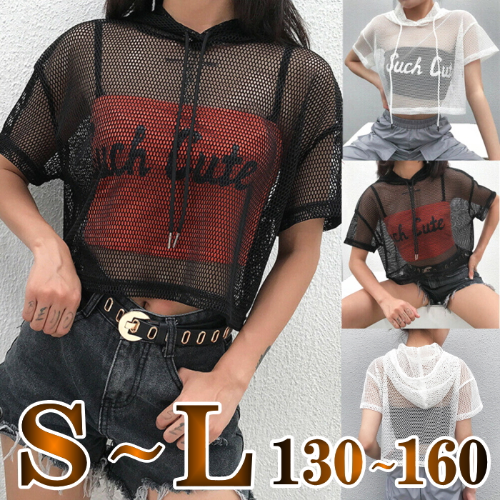 メッシュパーカー トップス フード付き レディースファッション 早い者勝ち Sサイズ(130cm~140cm相当) Mサイズ(140cm~150cm相当) Lサイズ(150cm~160cm相当) ブラック ホワイト