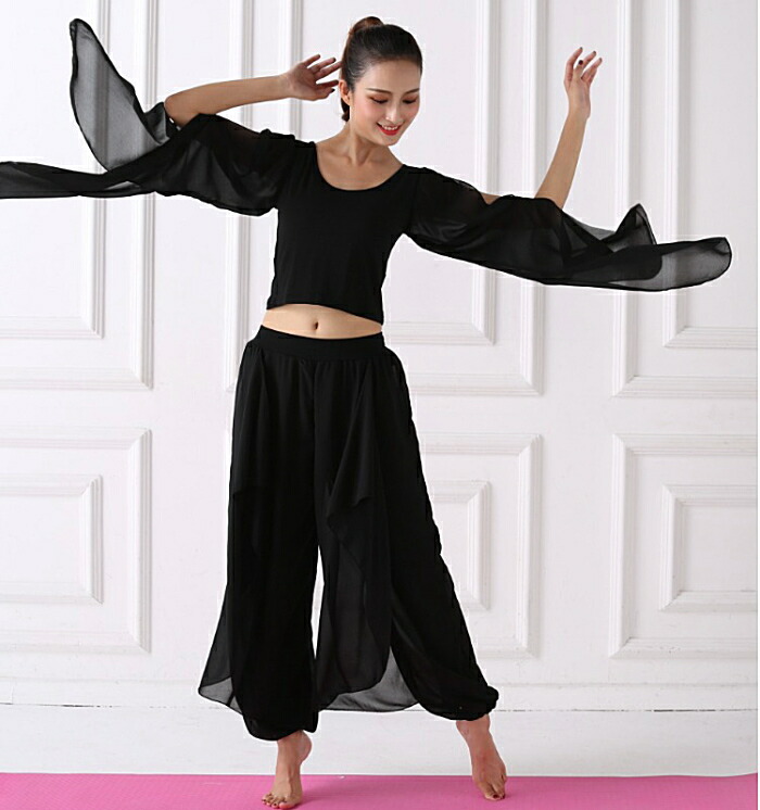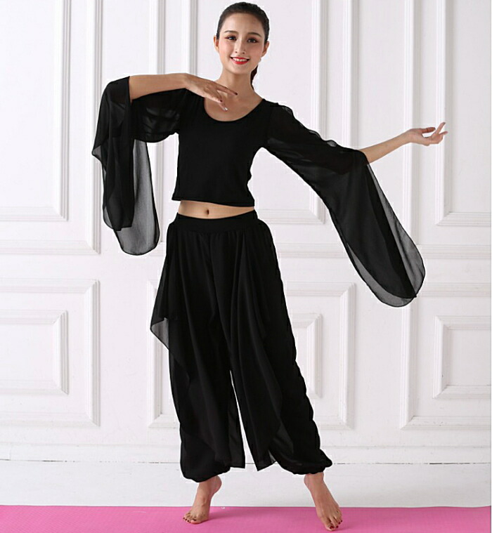 優雅な衣装 セットアップ ダンス ヒップホップ パンツ トップス スカーチョ ワイドパンツ ガウチョ チョリ へそ出し ショート丈 ツーピース 上下セット ハーレムパンツ ベリーダンス シースル 長袖