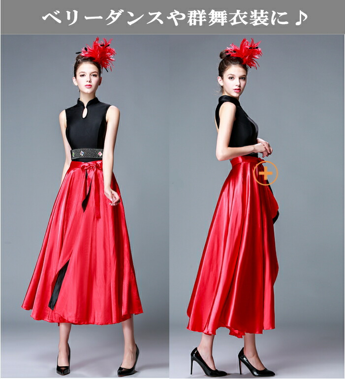巻きスカート ロングスカート フレア 体操 ダンス フラメンコ スカート 新作 Aタイプ(丈約75-80) Bタイプ(丈約90-95)