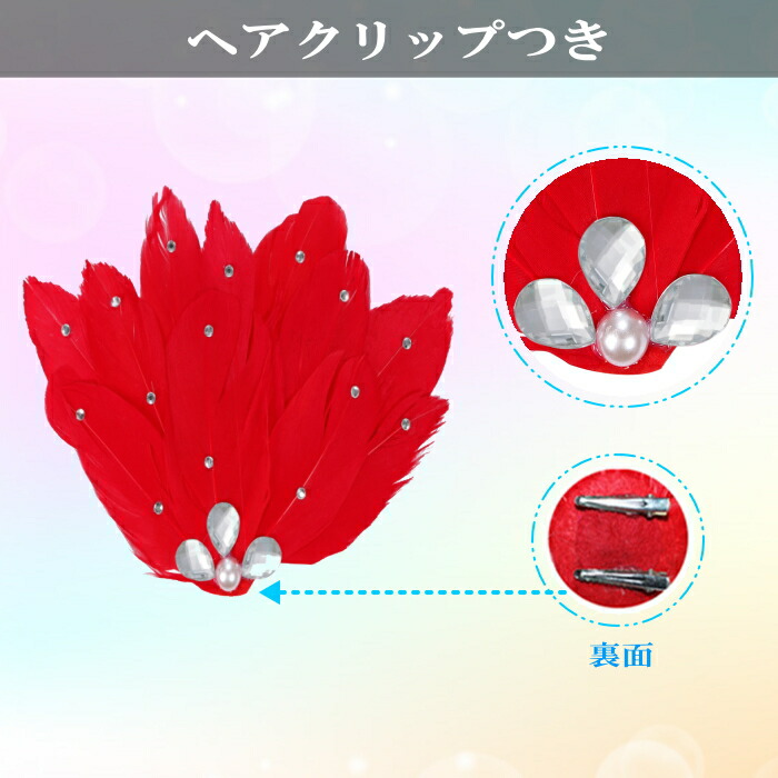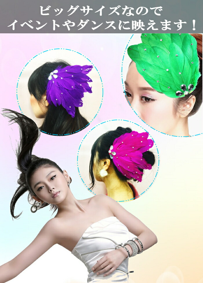 羽根 フェザー ヘアアクセ ビックコサ レディースジュエリー アクセサリー ヘアアクセサリー ヘアクリップ 特集 ブラック ホワイト レッド ピンク ブルー ターコイズ パープル グリーン