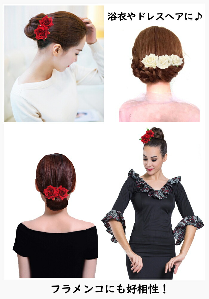 バレッタ ヘアコーム 大きめ コサージ 体操 ダンス フラメンコ その他 早い者勝ち 4点セット ヘアコーム単品 バレッタ単品 ダークレッド ブラック ホワイト ネイビー レッド
