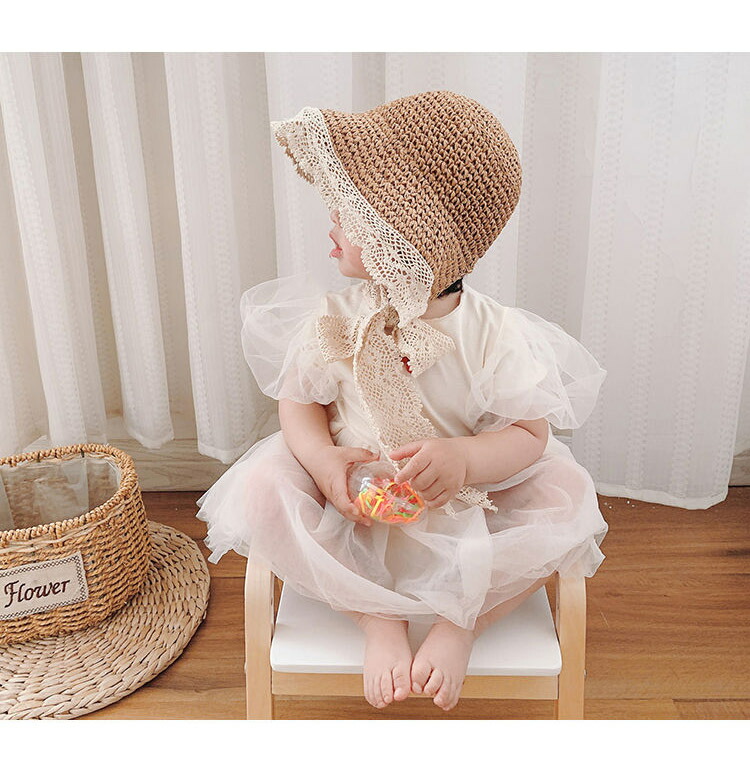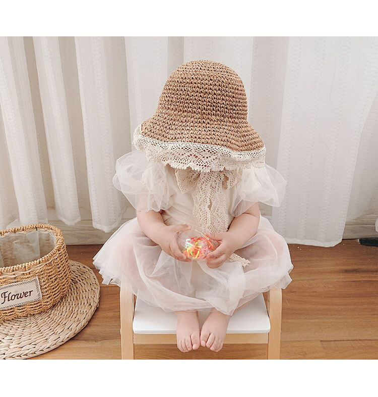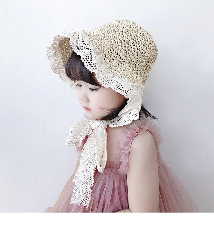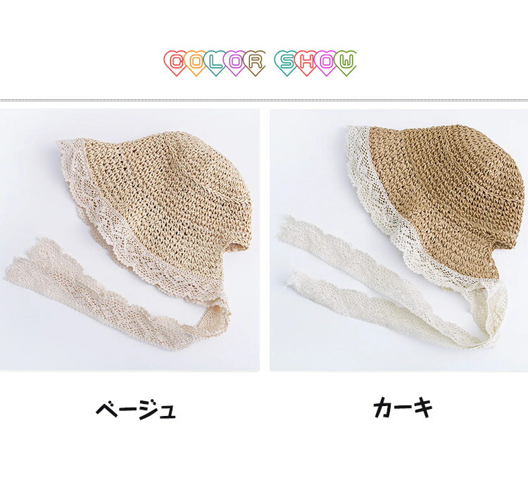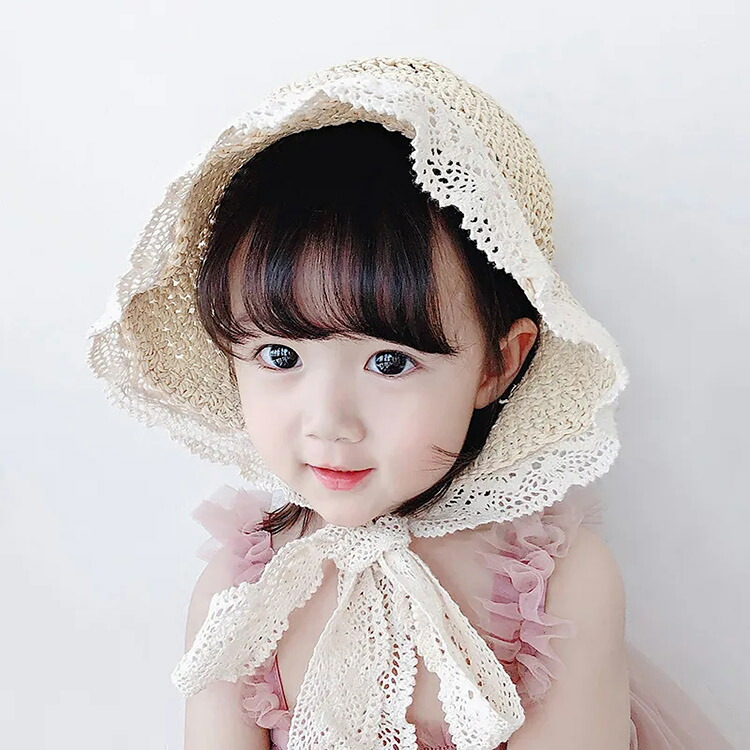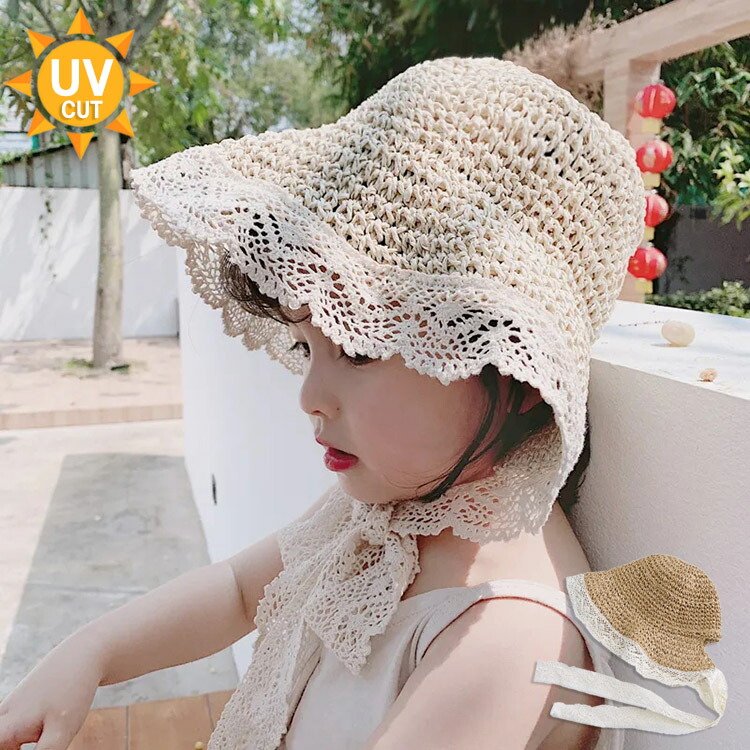 麦わら帽子 キッズ ベビー レース あ キッズ ベビー マタニティ 新作 ベージュ カーキ