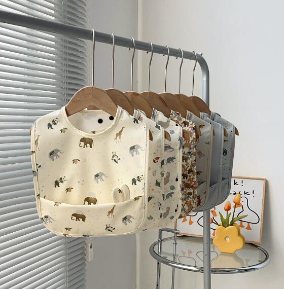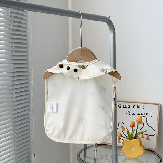 お食事エプロン6デザイン赤ちゃんベビー離乳食防水女の子男の子ビブスタイポケット韓国おしゃれ可愛い袖なし ナチュラルボタン保育園ポリウレタンエプロン