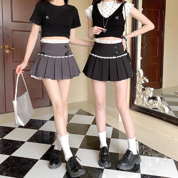 リボンキュロットスカパン2色黒ブラック ボトムス スカート 通販 ブラック グレー S M L XL