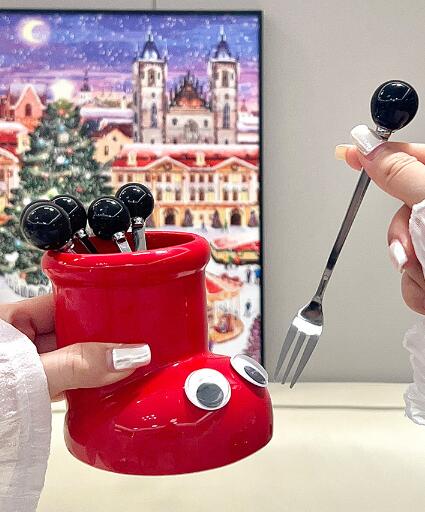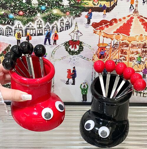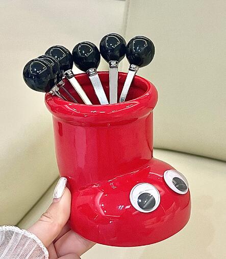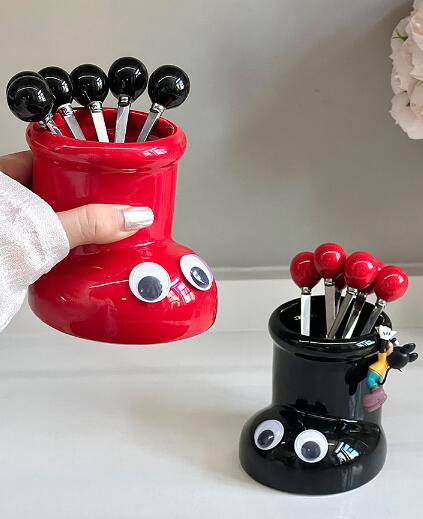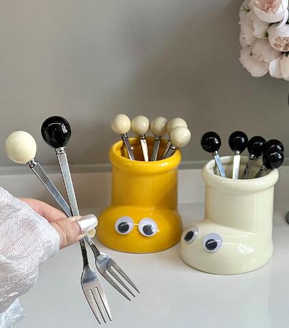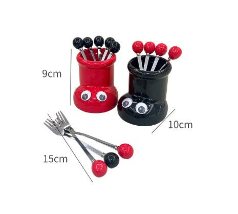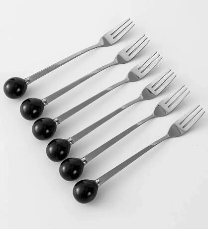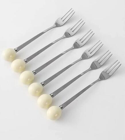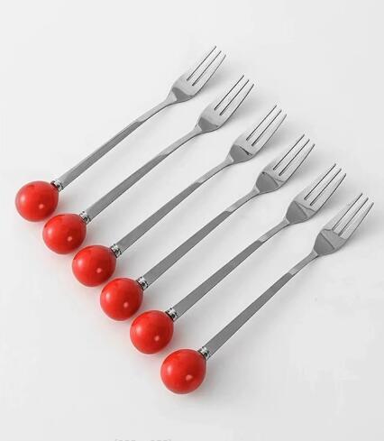 ステンレス製フルーツフォーク 6本セッ 食器 カトラリー グラス 箸 カトラリー フォーク 超目玉商品 レッド イエロー ブラック アイボリー レッド ブラック アイボリー