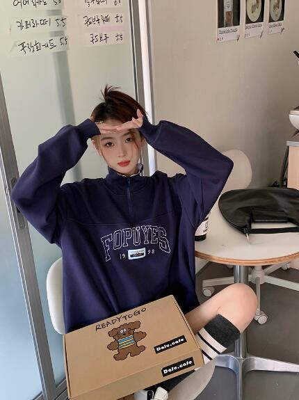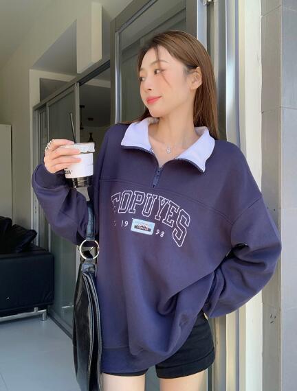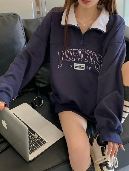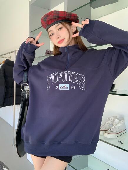 ハーフジップトレーナーロゴジップアップ レディースファッション 続々入荷中 裏起毛なし 裏起毛あり