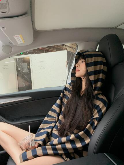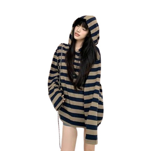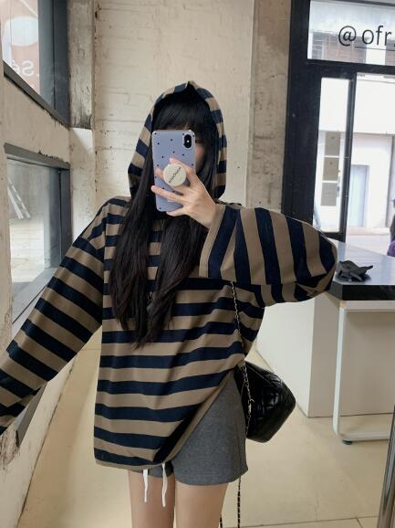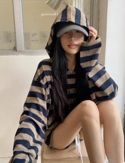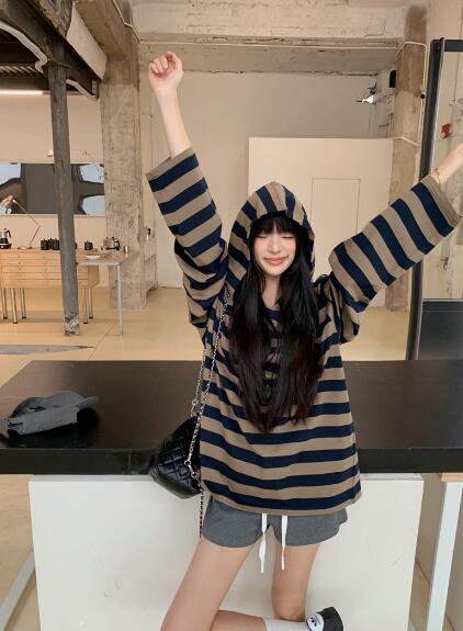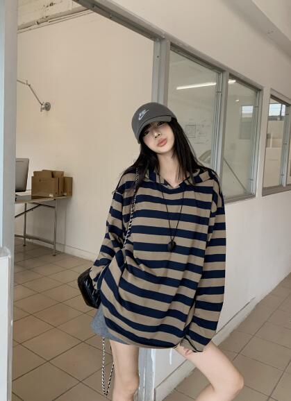 ボーダー柄フードフーディートレーナー レディースファッション 続々入荷中