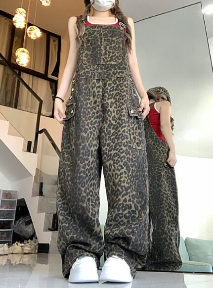 ヒョウ柄デニムオーバーオールサロペット オールインワン サロペット 新作 S M L XL