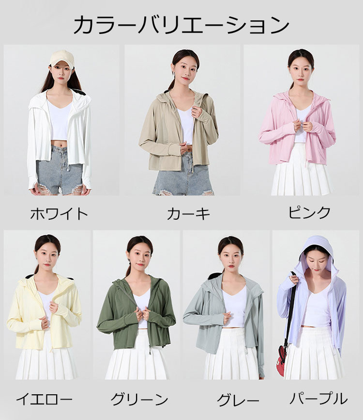 UVカット パーカー UVポンチョ ラ レディースファッション 新作 ホワイト カーキ ピンク イエロー グリーン グレー パープル