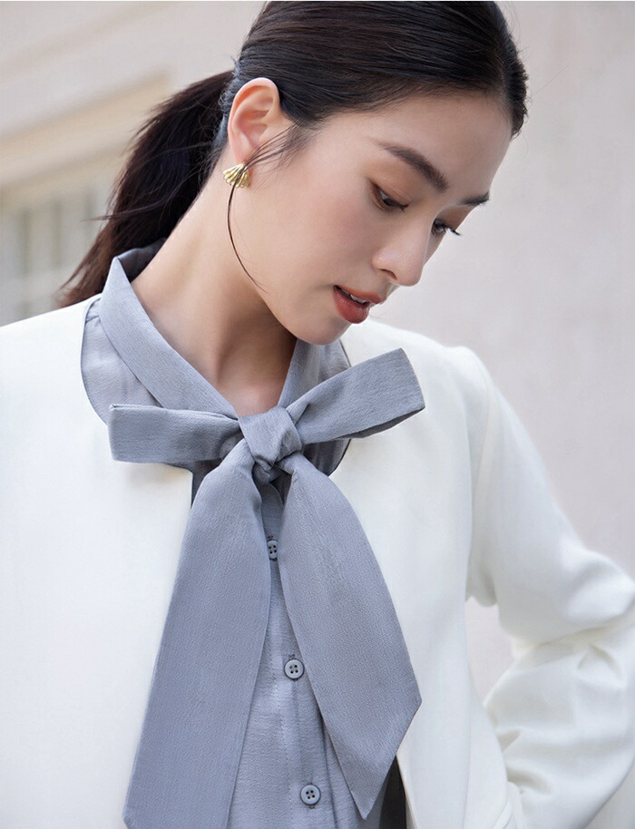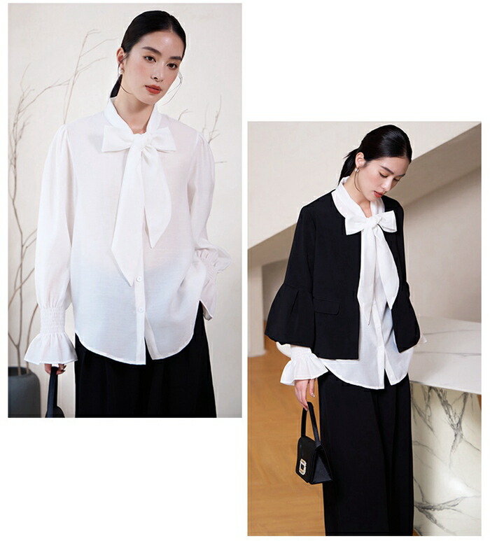 シアースリーブ ドッキングシャツ ボウタイシャツブラウス