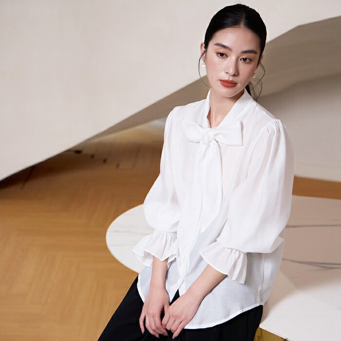 シフォンブラウス シアーブラウス ボリューム袖