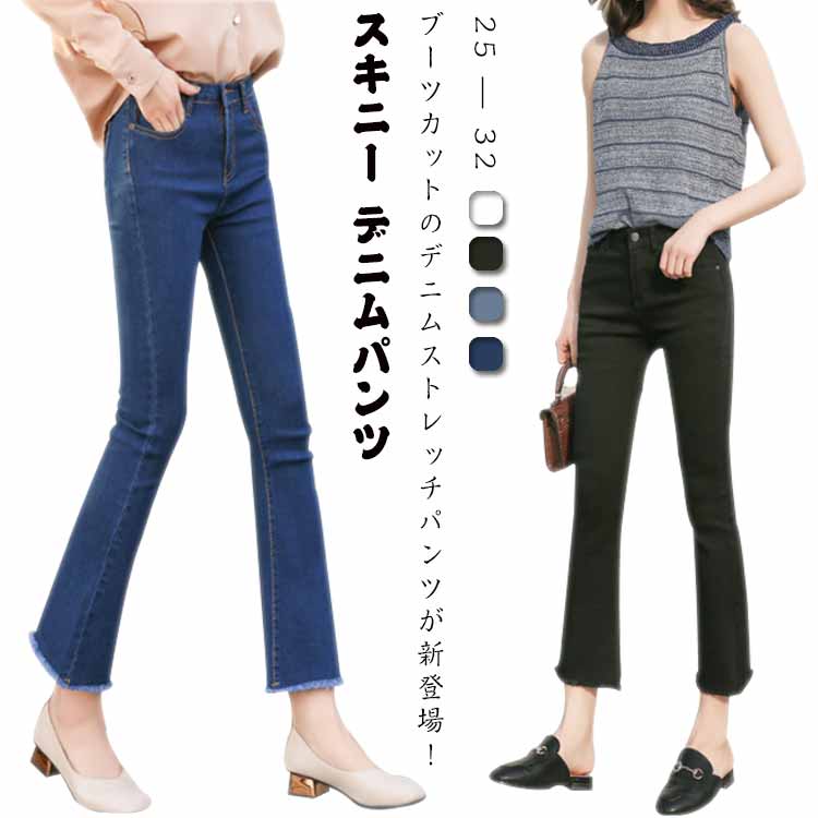 ブーツカット スキニー デニムパンツ レディース 大きいサイズ フレア デニム パンツ 8分丈 9分丈 春夏春 美脚 フリンジジーンズ ジーパン 裾フレア ママ 母 オフィス 20代 3 OL