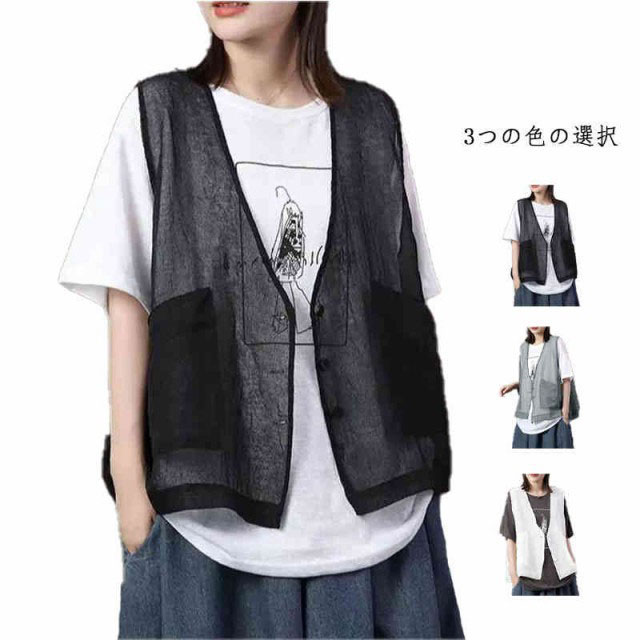 カジュアルベスト カーディガン ゆったり カット 薄手 春夏 冷房対策