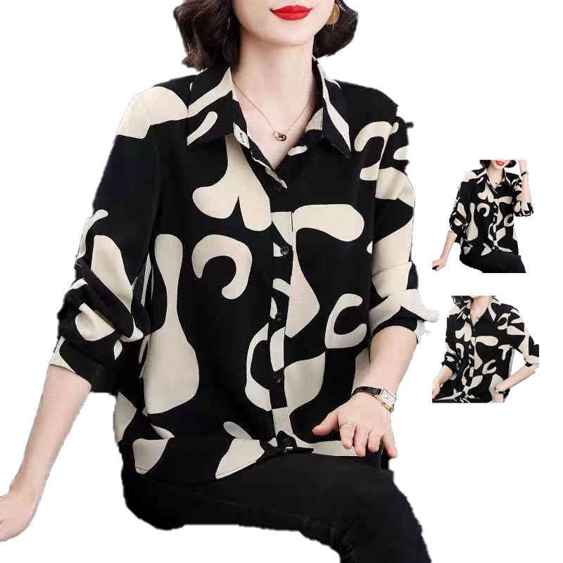 レディース カジュアルブラウス シフォンシャツ インナーブラウス ゆったり 長袖トップス オシャレブラウス 大人 プリントシャツ おしゃれ 春秋 シャツ おしゃれブラウス カジュアル 通勤