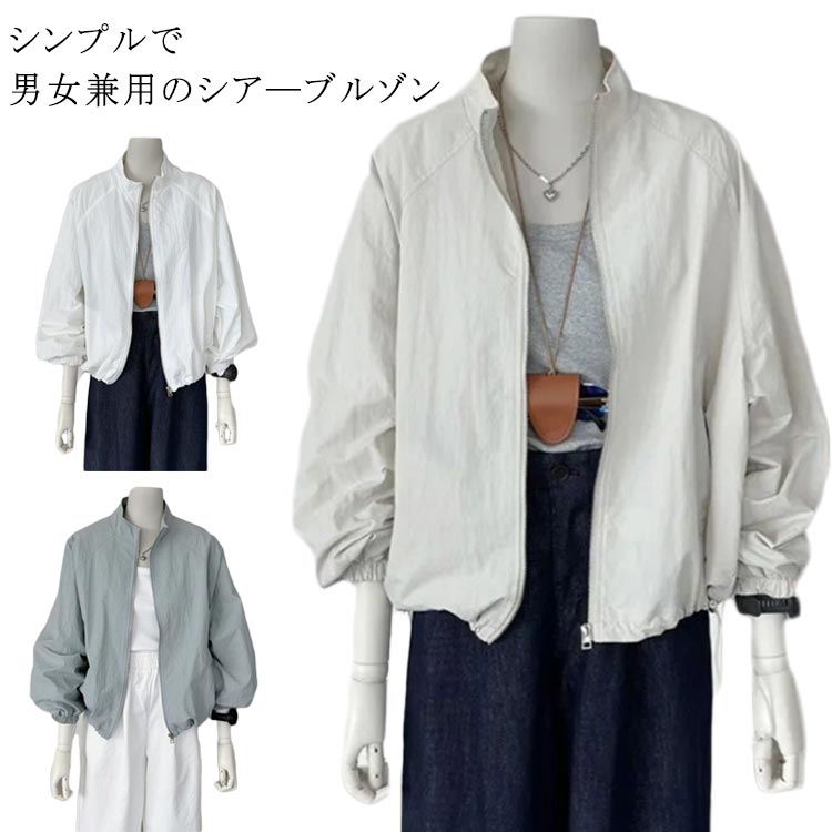 ショート レディース ジャケット シア―ブルゾン シースルー 軽い 長袖 ノーカラー ライトアウター 透け感 ジップアップ シアー 大きいサイズ 春 無地 カジュアル 薄手 夏 軽量