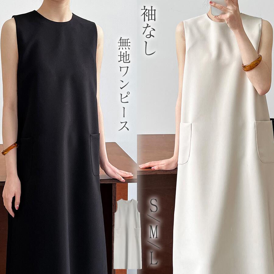 Iライン ロングワンピース 袖なし エステルツイルハーフジップ ワンピース バックジップ ジッパー 時短 ツイル とろみ ノースリーブ 夏 30代 40代 華奢見え シンプル スッキ 着痩せ