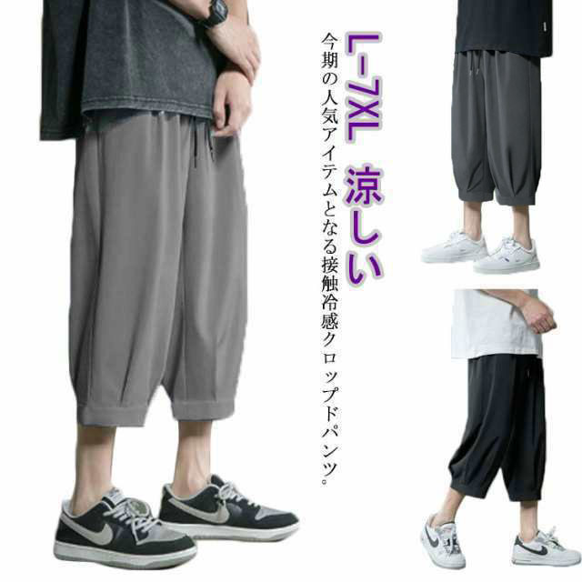 クロップドパンツ メンズ 七分丈 パンツ 接触冷感 ひんやり アイスシルク ワイドパンツ 大きサイズ 春夏